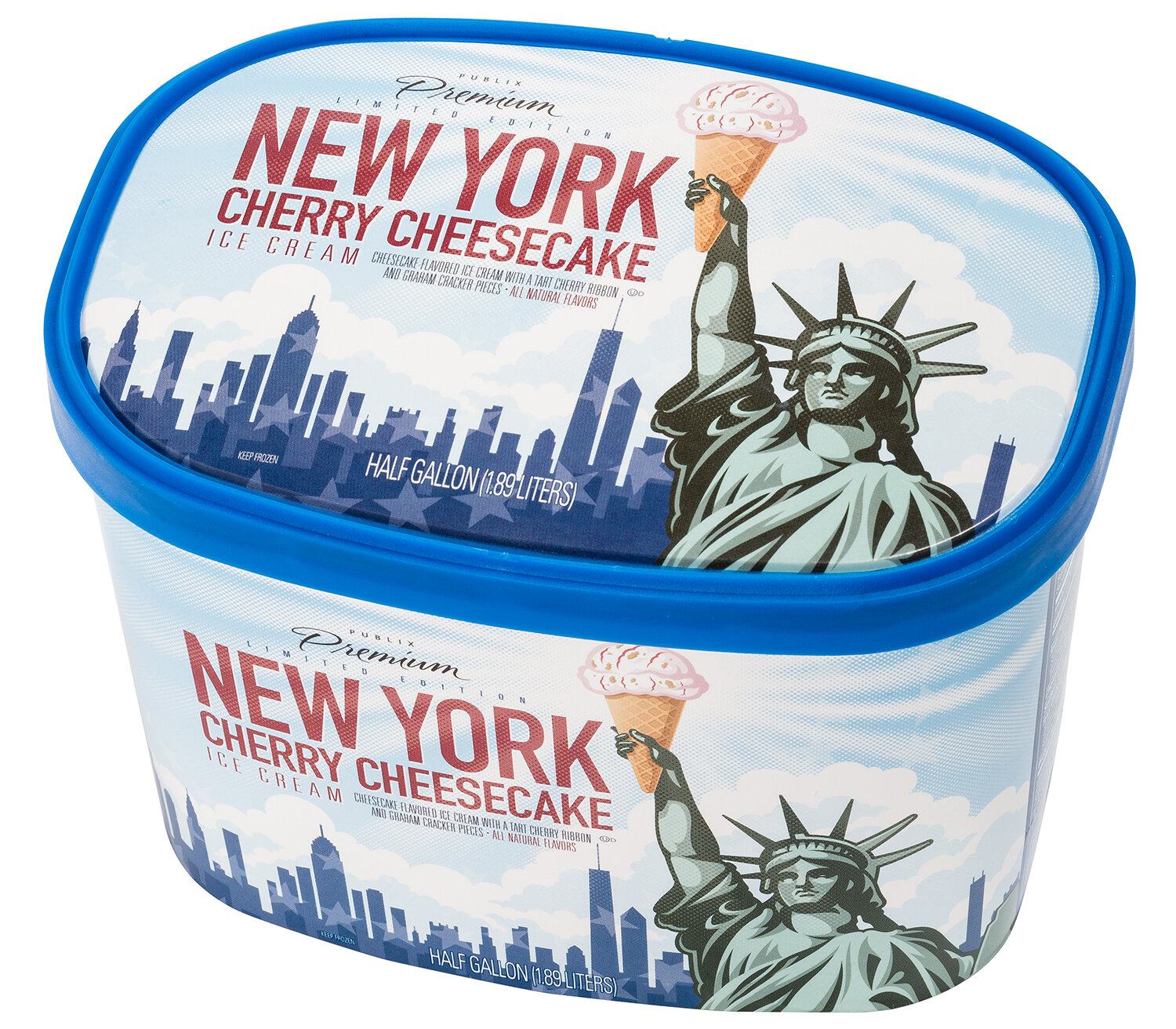 Crafting the perfect packaging for Publix Premium's limited-edition New York Cherry Cheesecake ice cream was a delightful challenge. Our patriotic-infused design featuring the iconic New York skyline and the Statue of Liberty takes center stage.